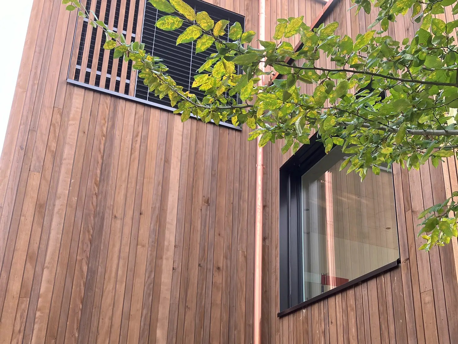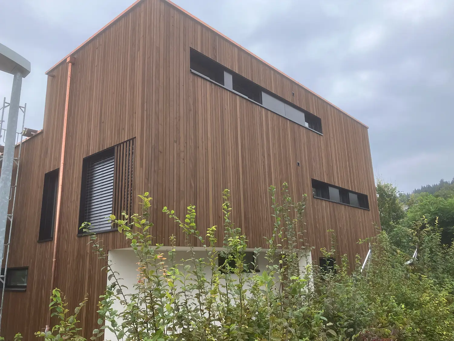 - Holzfassade mit druckimprägniertem Schweizer Weisstannen-Holz